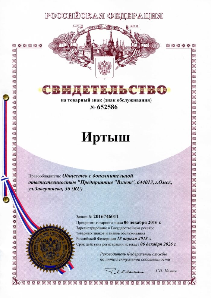 Свидетельство на товарный знак Иртыш