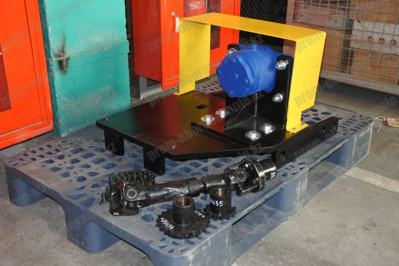 Карданный вал, входящий в комплект поставки крепится к фланцу вала отбора мощности, а другой стороной к звездочке находящейся на валу подшипникового узла.