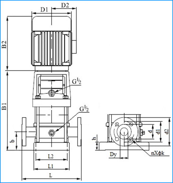 В1 В2 В1+В2 D1 D2 L L1 L2 b h Dy d d1 d2 n k