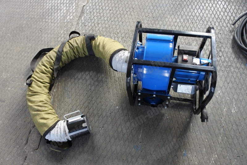 Производительность агрегата составляет 2000 м³/час (≈ 0,5 м³/мин), поэтому продувка колодцев и каналов технического назначения займёт от 5 до 15 минут. Проветривание может выполняться как в режиме притока, так и вытяжки, в зависимости от того, какой патрубок подключён к обслуживаемому объёму. Для зональной обработки объекта используется гибкий рукав длиной до 20 м.